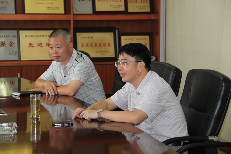 8月8日下昼,桐乡市政府副市长周民在市环保局长徐汉会、市政府办副主任魏昱初、凤鸣街道主任张建根等陪同下,莅临我公司检查指导事情,公司董事长、总司理莫炳荣接待了周副市长一行。